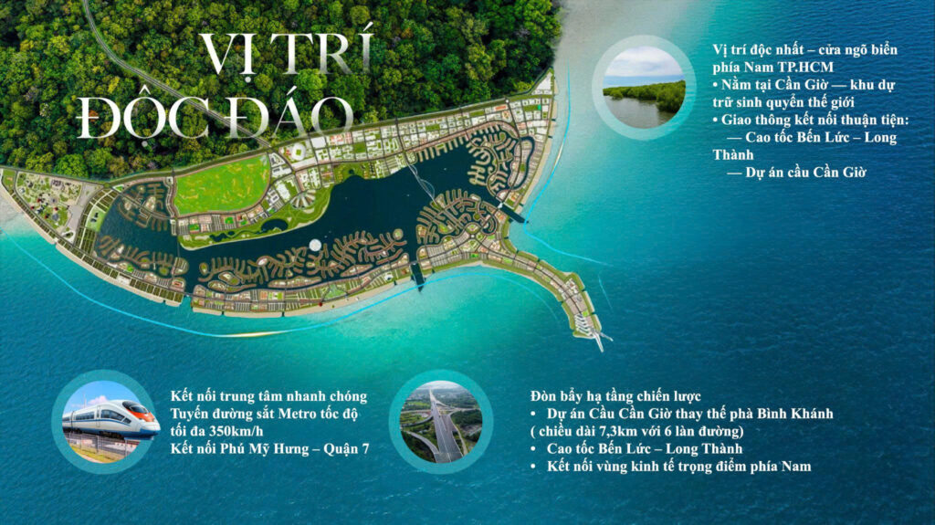 Một trong những điểm nhấn lớn nhất là cảng trung chuyển quốc tế Cần Giờ với quy mô công suất 16,9 triệu TEU/năm. Đây là dự án hạ tầng hàng hải có vốn đầu tư khoảng 5,5 tỷ USD, hứa hẹn đưa Cần Giờ trở thành hải cảng trung chuyển hàng đầu Đông Nam Á, cạnh tranh trực tiếp với Singapore và Malaysia trong lĩnh vực logistics.